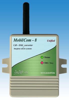 A MobilCom-8 család egy olyan GSM átjelző modul család, mely riasztó- vagy tűzjelző központok telefonvonali kimenetéhez illesztve a központok ContactID riportjait átfordítja szöveges üzenetekké, és továbbítása SMS-ben max. 4 felhasználó mobiltelefonjára. A modul normál működésekor a riasztóközponttól a ContactID üzeneteket átveszi és nyugtázza a központot, azokat szöveges üzenetekké konvertálja, majd az egy kommunikáción belül leadott első 2 üzenetet a konfigurációnak megfelelően SMS-ben továbbítja a felhasználó(k) telefonjára. A készülék széleskörűen konfigurálható laptopok és számítógépek microUSB portján keresztül a SeaSoft Kft. által írt ingyenes Unified univerzális letöltő szoftvere segítségével. A modul kifejezetten a központok dobozába tervezetten, azok 12V-os akkumulátorára és telefonvonali kimenetére csatlakoztatva működik, szolgáltató független GSM modullal, amely feltöltős vagy előfizetéses nanoSIM kártyát igényel.
