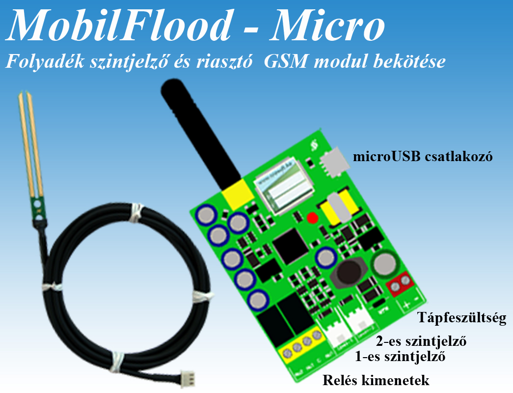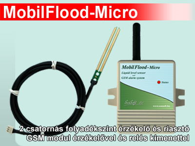 A MobilFlood-Micro GSM modul egy speciális modul, mely kifejezetten pincék, alagsorok, mélygarázsok, kutak, vízaknák, medencék, tartályok, túlfolyók számára alacsony vízszint-, magas vízszint-, vízbetörés és megemelkedett talajvíz jelzés és riasztásra céljából került kifejlesztésre. Esővíz, termálvíz, talajvíz és egyéb állóvizek megjelenése vagy szintváltozása jelzésére alkalmas. 2 szonda bemenete van mely vízbe merülésekor, vagy annak megszűntekor SMS küldést és/vagy hanghívást kezdeményes. A felhasználó által számítógépről USB porton keresztül felprogramozott konfigurációval, telefonszámokkal működik. A MobilFlood-Micro GSM 4 mobilszámra programozható a modulba letöltött programja szerint. A GSM modul szolgáltató független, feltöltős vagy előfizetéses nanoSIM kártyával üzemel. Opcionálisan beállítható nyugtázás funkciója is van, mely ráhívással nyugtázható.