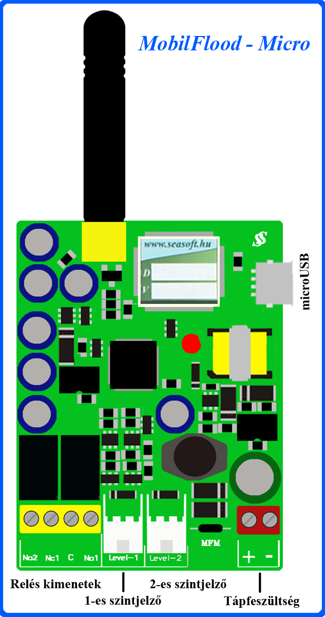A bedobozolt kivitelű és független GSM modullal és beépített antennával szerelt verziója MobilFlood-Micro néven, a külső mágnestalpas antennával pedig MobilFlood-Micro-a néven rendelhető. Ingyenes letöltő szoftvere, és a modul leírása a www.seasoft.hu weblapunkról tölthető le. Moduljaink számítógépről microUSB csatlakozón keresztül konfigurálható Windows-7 (vagy annál frissebb) operációs rendszer alatt. A MobilFlood-Micro szolgáltató független ipari GSM modulal, hanghívásra és SMS küldésre egyaránt alkalmas előfizetéses és feltöltős nanoSIM kártyával működik.